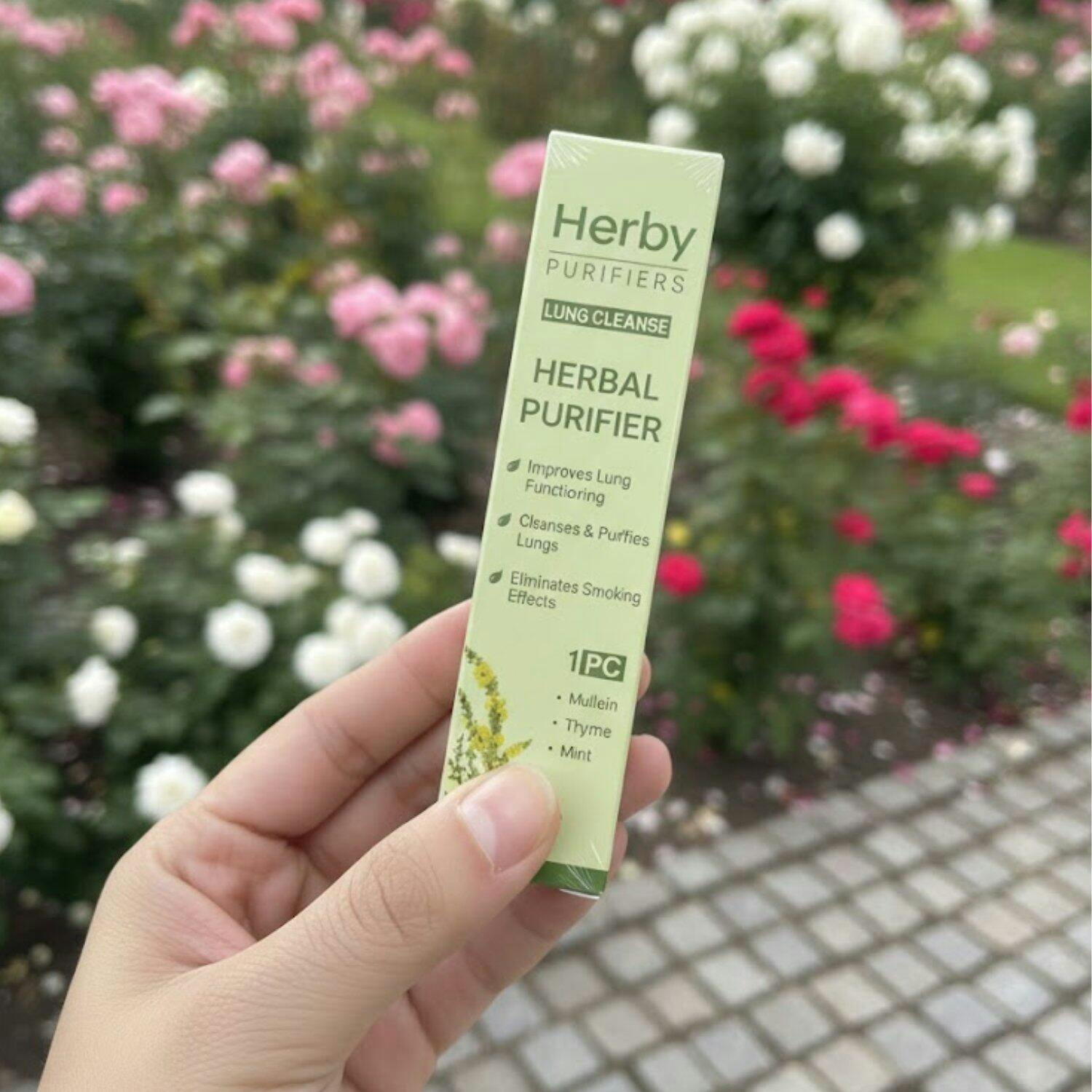 Experience a refreshing herbal blend of mullein, thyme, and mint, designed to help you feel your lungs lighter, calmer, and cleaner with every inhale.
